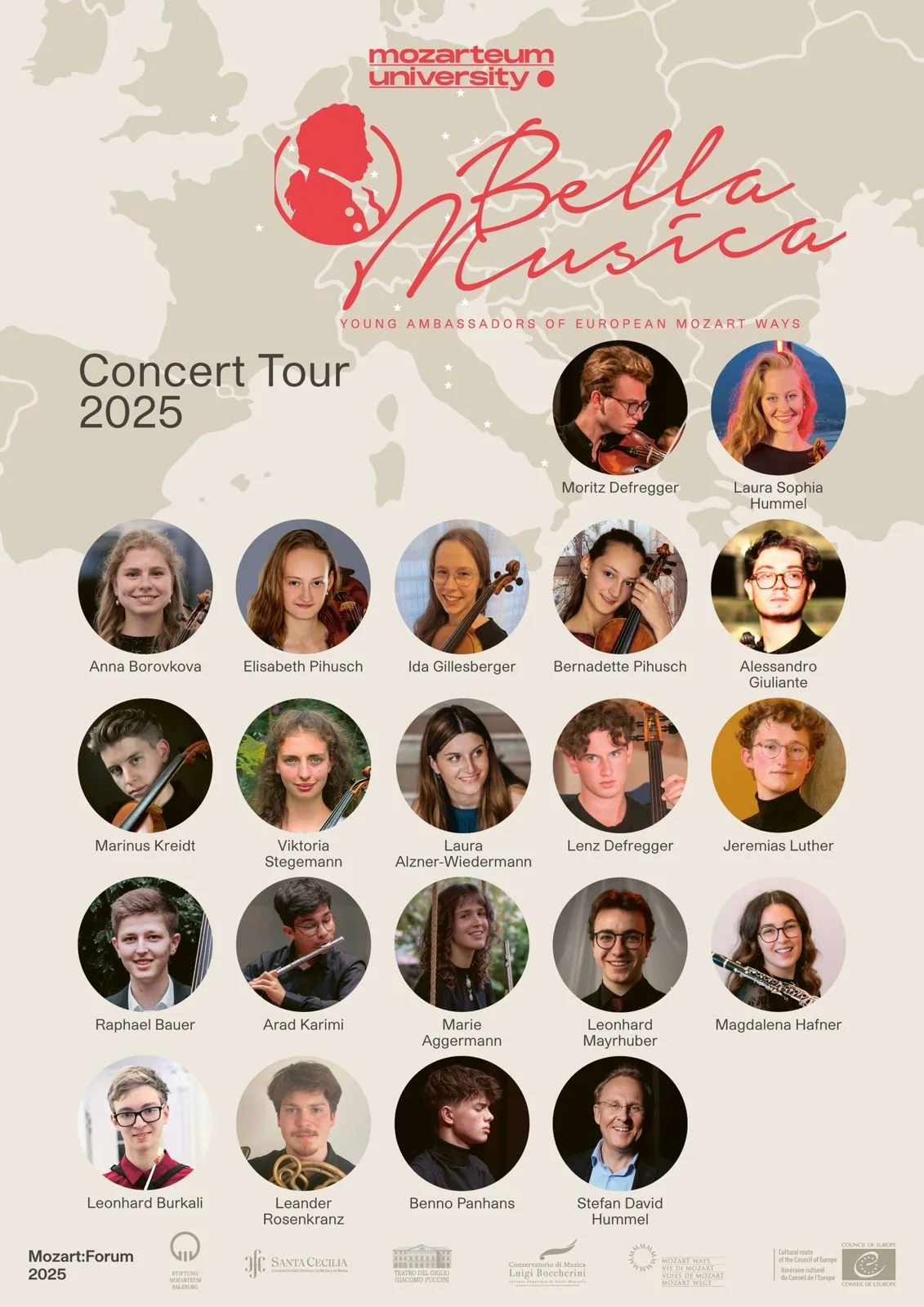 In einer Zeit wachsender Spannungen kann Musik Brücken bauen. Mit der diesjährigen Tour im Rahmen der Europäischen Mozartwege möchten die jungen Musikerinnen und Musiker des Ensemble Bella Musica ein deutliches Zeichen setzen: für kulturellen Austausch, für Zusammenhalt und für ein Europa, das auf Dialog, Respekt und Vielfalt gründet.