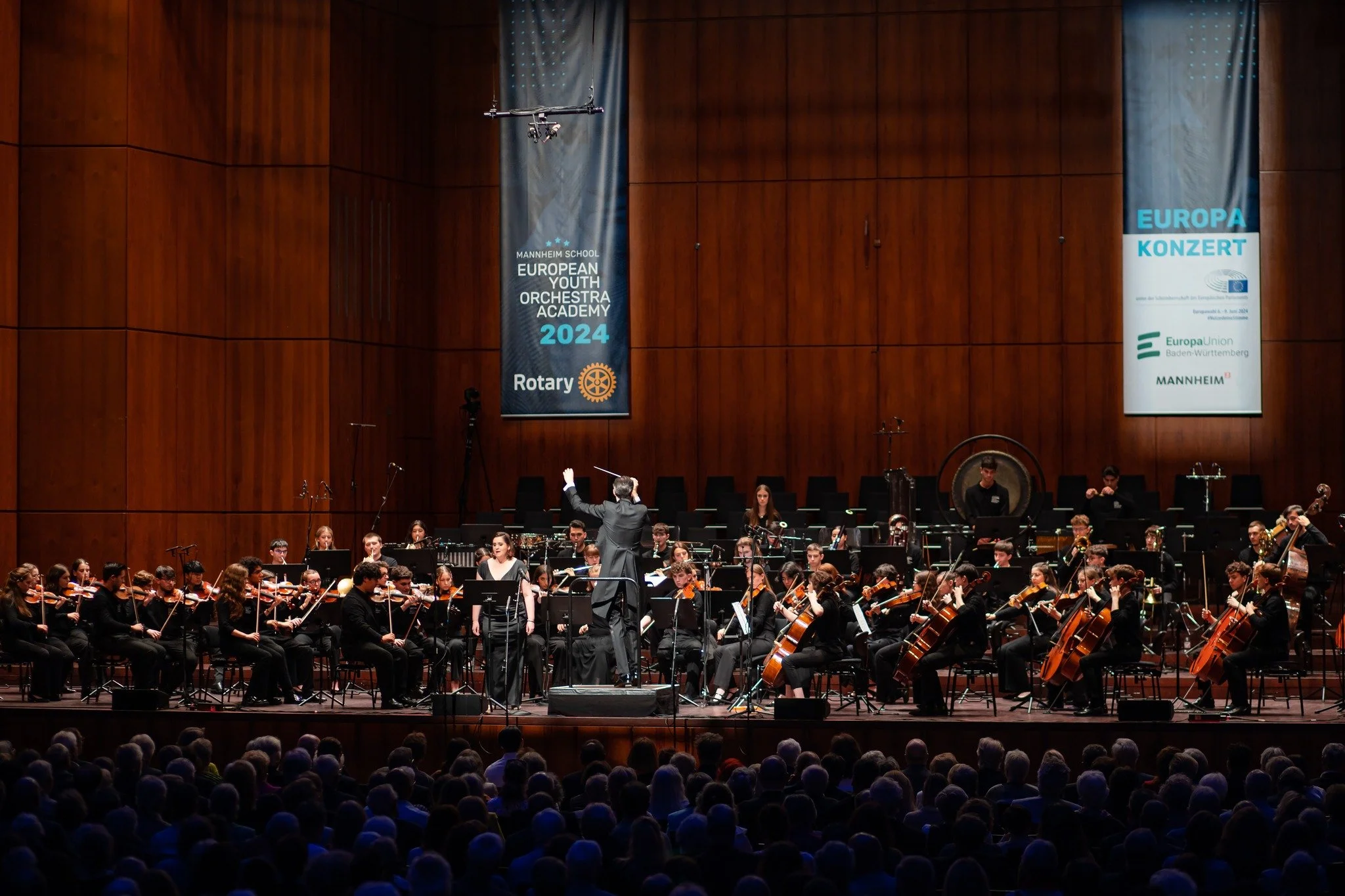 Rund 70 hochbegabte junge Musiker:innen im Alter von 14 bis 19 Jahren aus allen Teilen Europas wurden auch in diesem Jahr von einer Fachjury ausgewählt. Die beiden Abschlusskonzerte am 31. Mai (Eurogress Aachen) und 1. Juni (Rosengarten Mannheim – Mozartsaal) des diesjährigen Orchesterworkshops fanden zusammen mit dem Opernchor des Nationaltheaters in Mannheim, Solisten des Nationaltheaters Mannheim unter der Leitung von Jan Paul Reinke statt. Auf dem Programm standen Beethovens IX. Sinfonie, Hans Eislers Gegen den Krieg mit Texten von Bert Brecht sowie Marios Joannou Elias Neukomposition PHILIA – Ode an die Freundschaft, die im Rahmen der Konzerte zur Welturaufführung kam.