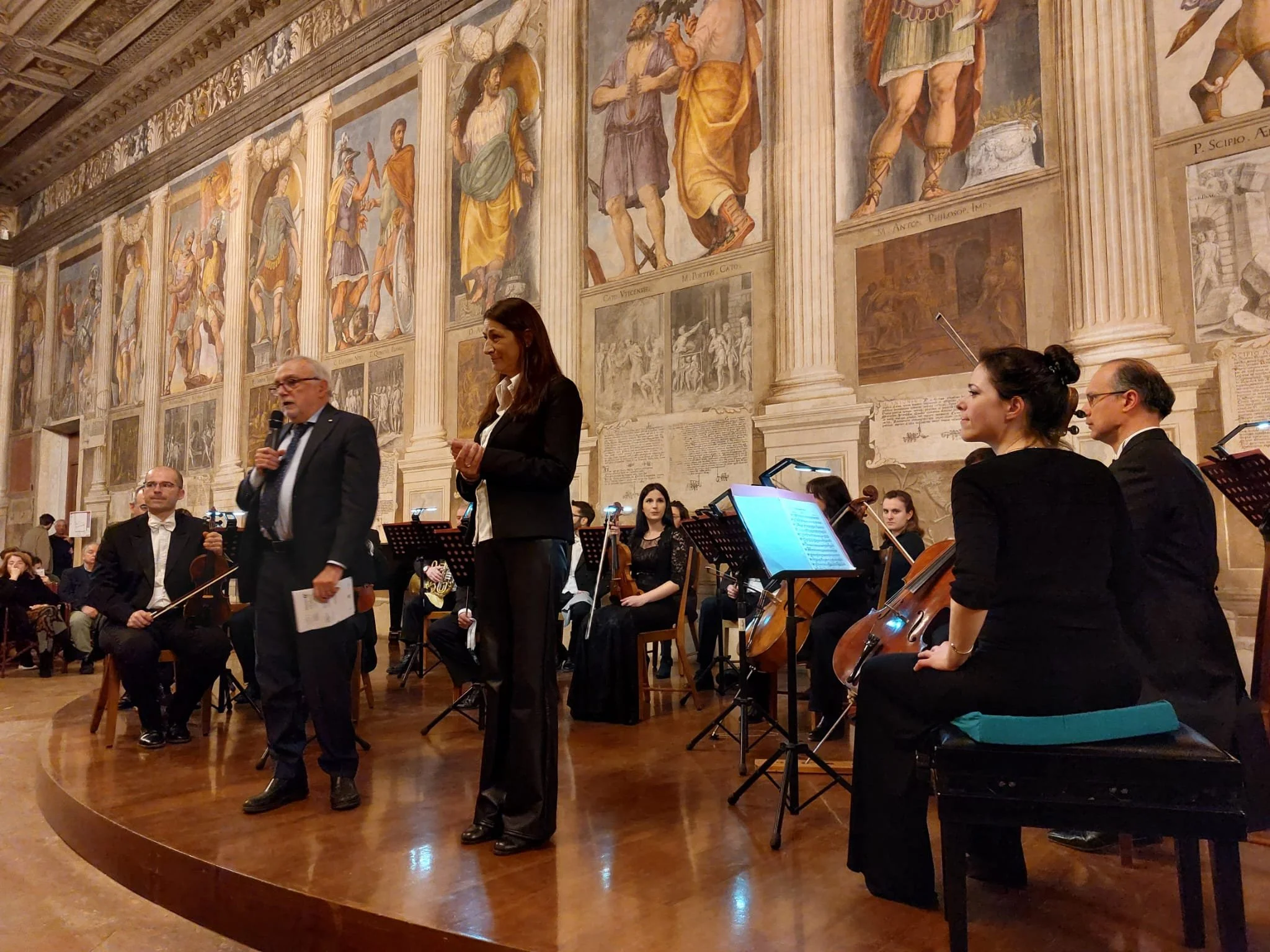 Angela Romagnoli (Vorstandsmitglied der EMW) und Paola Cattaneo (Kuratorin des Festivals) überbrachtem dem Publikum besondere Grüße der Europäischen Mozart Wege. Einleitende Worte richtete auch Paolo Giaretta, Vizepräsident des Orchesters, an das Publikum.