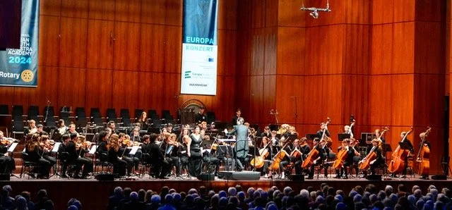 Unter der Schirmherrschaft des Europäischen Parlaments, der Europaunion Baden-Württemberg und des Oberbürgermeisters der Stadt Mannheim, Herrn Christian Specht. Das Konzert findet im Rahmen der Orchesterakademie 2025 statt, die vom 17 – 20 April stattfinden wird.