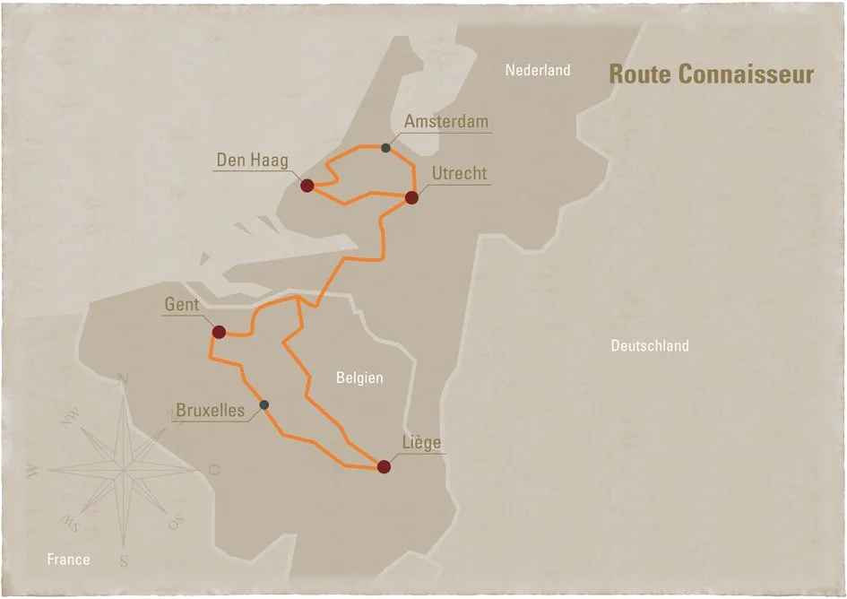 Reisen Sie auf Mozarts Spuren durch Europa: Alpine Route Great Cities In The Heart Of Europe Italia Grande Major German Rivers Route Route de France Austrian Route Habsburg Empire Route Italia Nord Old Flanders Route Route Royale